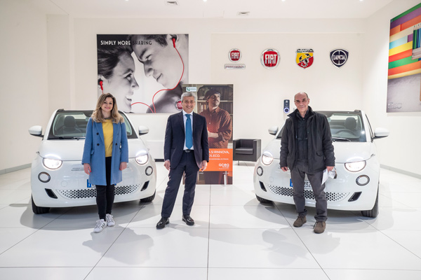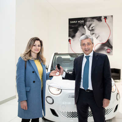 Ecco i due fortunati vincitori, Claudio e Laura Mariana, alla premiazione del Concorso “Una vincita che farà ECO” per ritirare il premio in palio: la Nuova Fiat Passion Cabrio 100% elettrica.